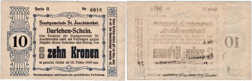 St.Joachimsthal (Jáchymov) - 10 Kor.1919, D-H.183/1.4 - série II., na reversu otisk další poukázky