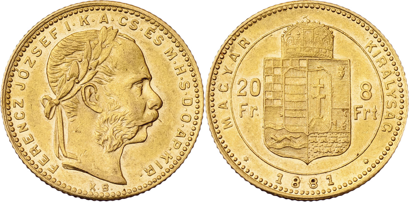 8 Zlatník 1881 KB, 6.444g, nep.hr., nep.rysky, téměř