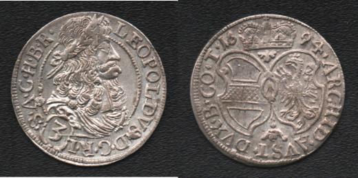 3 Krejcar 1694, Hall, Nech.2458, M-A.193, 1.610g, pěkná patina, téměř