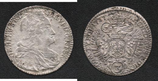 3 Krejcar 1737, Hall, M-A.237, 1.858g, mírně exc., pěkná patina
