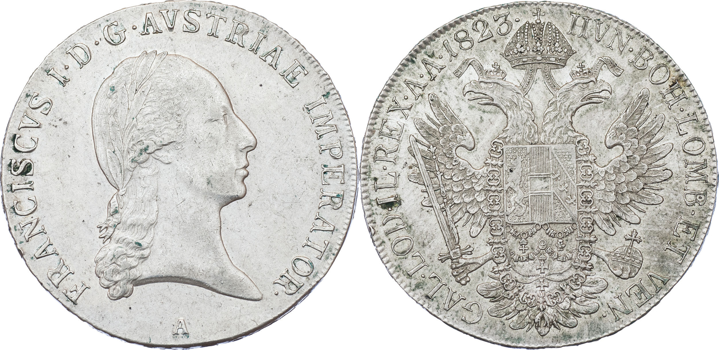 Tolar 1823 A, 27.997g, nep.hr., nep.rysky, skvrnky, patina