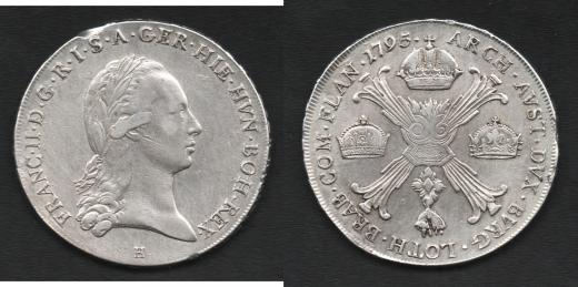 Tolar křížový 1795 H, Günzburg, 29.525g, vada mater. na hraně, dr.hr., dr.rysky, patina