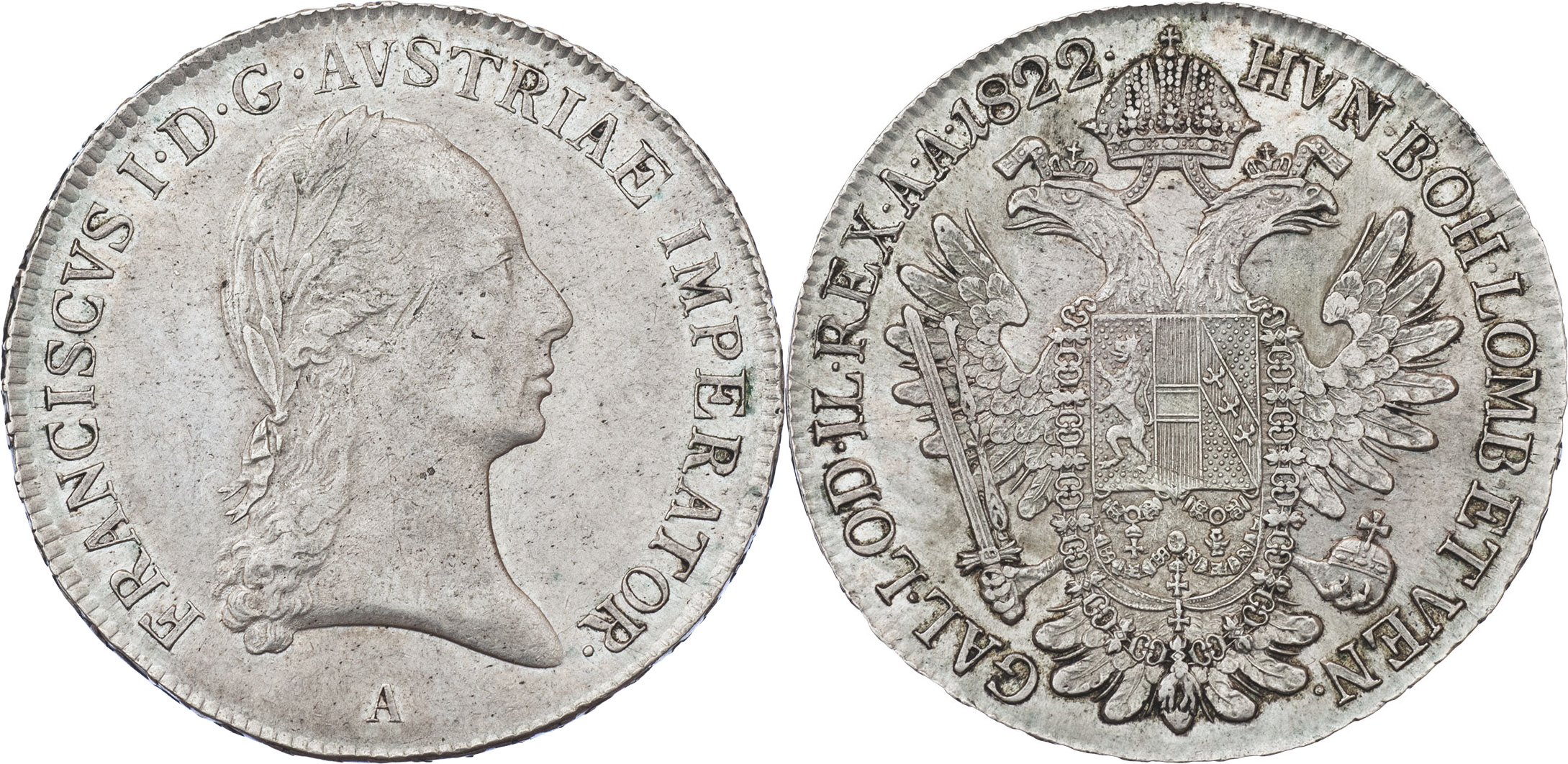 1/2 Tolar 1822 A, 14.056g, nep.rysky, pěkná patina R!