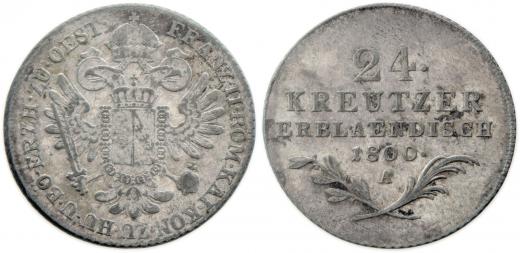 24 Krejcar 1800 A, 10.034g, pěkná patina, téměř R!