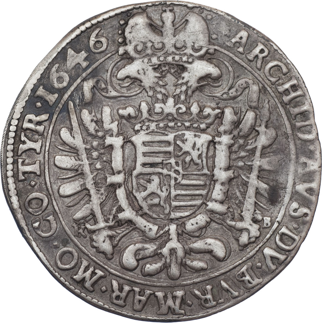 1/2 Tolar 1646 KB, Hal.241, Husz.1253, 13.628g, stopa po oušku, mírně okrájený, nedor., patina