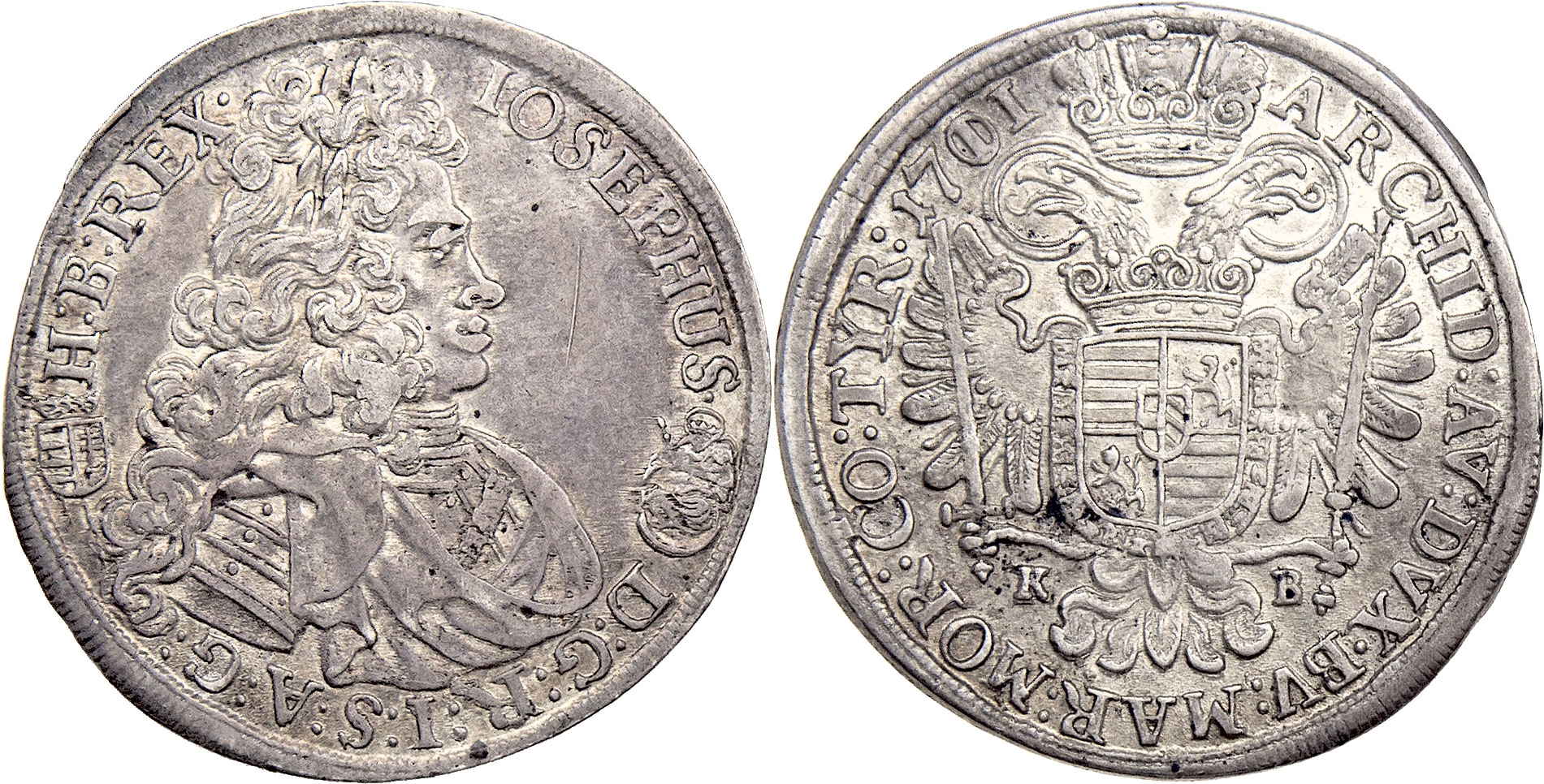 1/2 Tolar 1711 KB (oprava razidla Rv. z ročníku 1701) Hal.454, Husz.1576, 14.258g, dr.škr., krásná patina