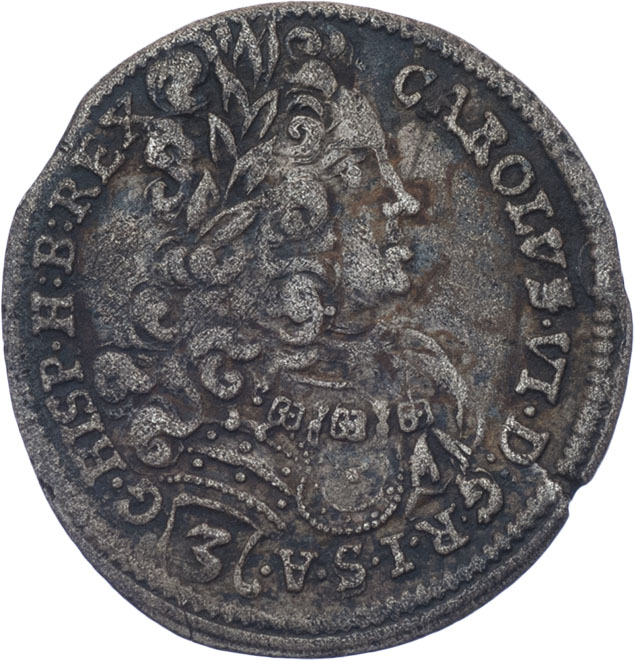 3 Krejcar 1712 CH-PW, Bratislava-Wödrödi, Hal.561, Husz.1629, 1.716g, krajový střížek, nep.exc., nep.nedor., pěkná patina R!