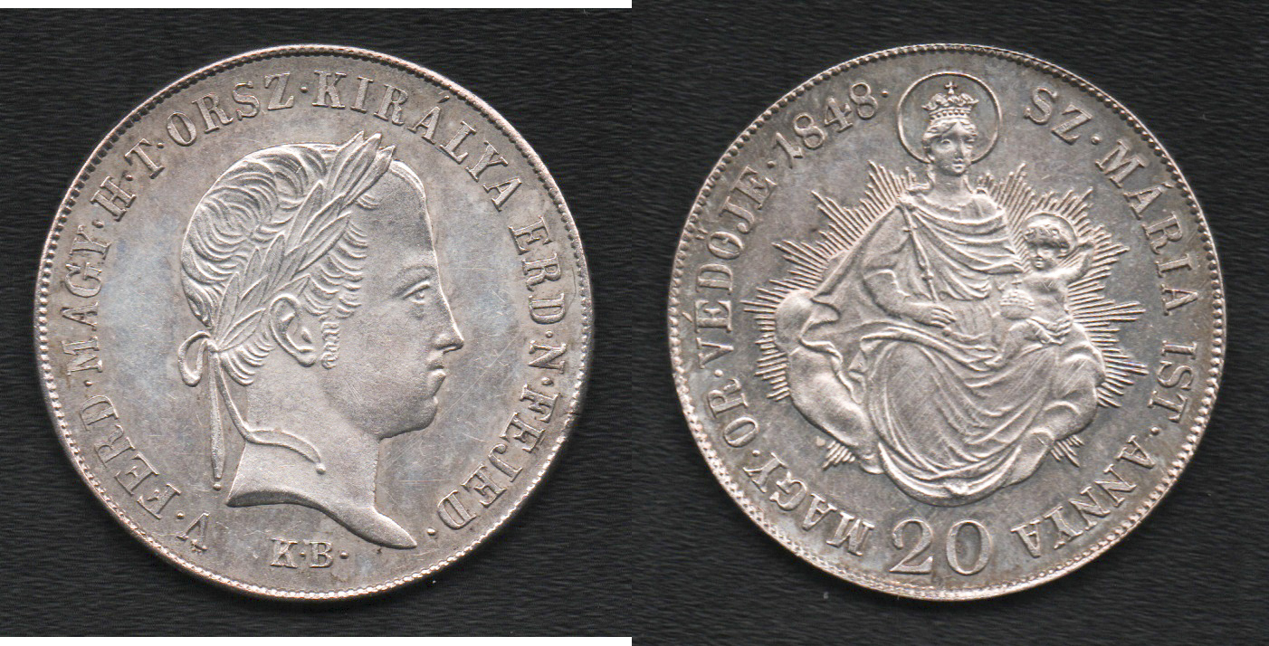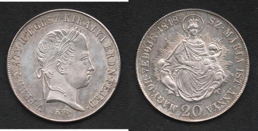 20 Krejcar 1848 KB - maďarský opis (revoluční typ)