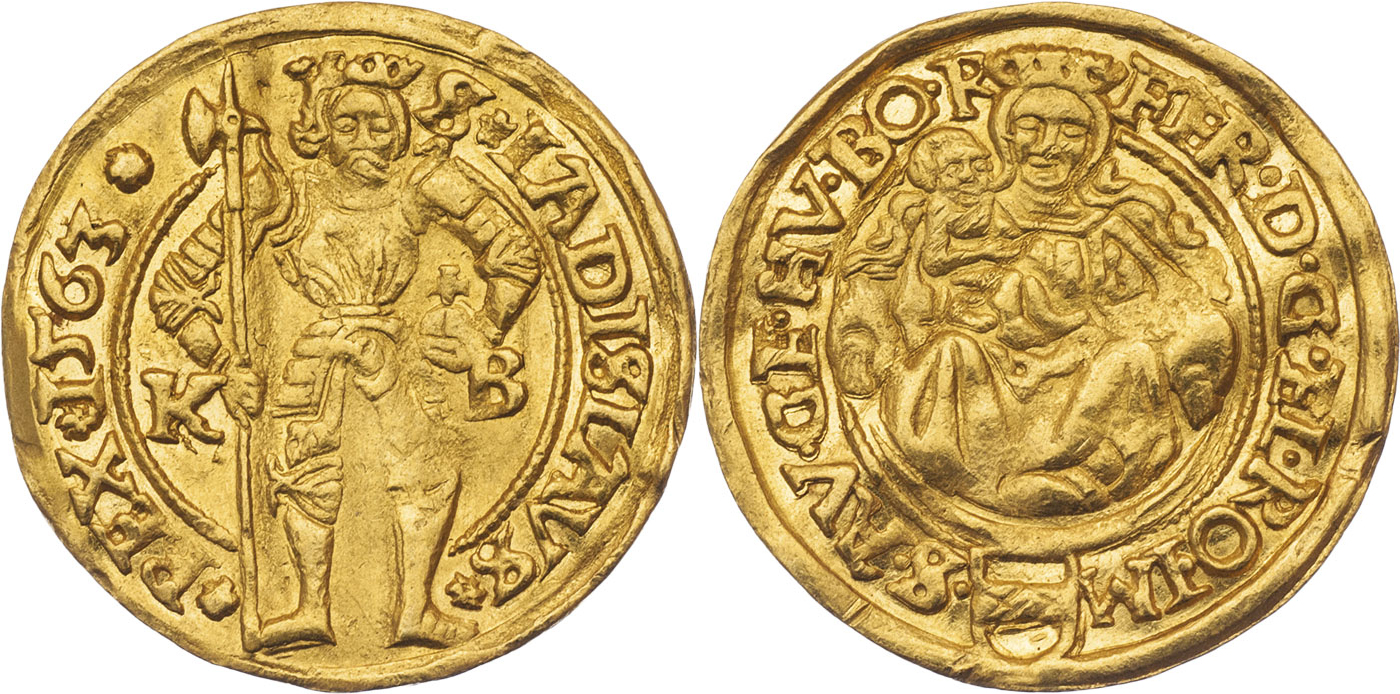 Dukát 1563 KB - s císařským titulem, Kremnica, Husz.896, Fr.50, 3.514g, zvlněný, pěkná patina
