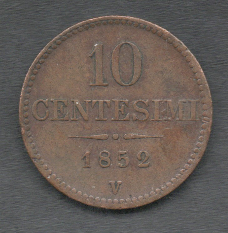 10 Centesimi 1852 V - menší typ, 10.532g, hr., dr.rysky, patina R!