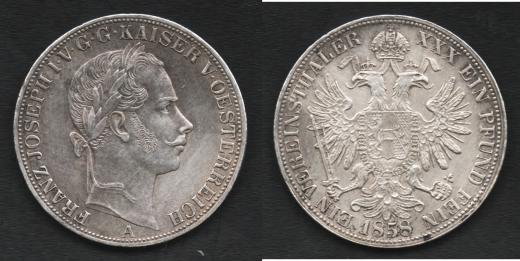 Tolar spolkový 1858 A, 18.548g, nep.hr., vlas.rysky, patina