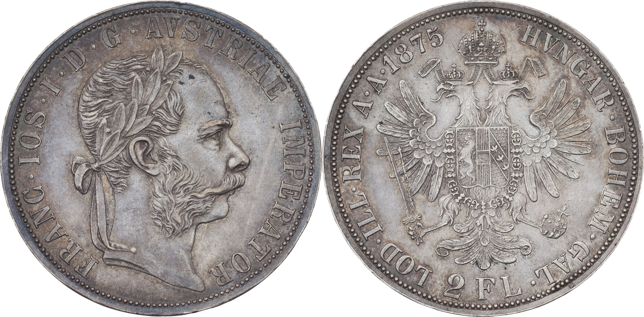 2 Zlatník 1875, 24.677g, nep.hr., nep.rysky, pěkná patina, téměř