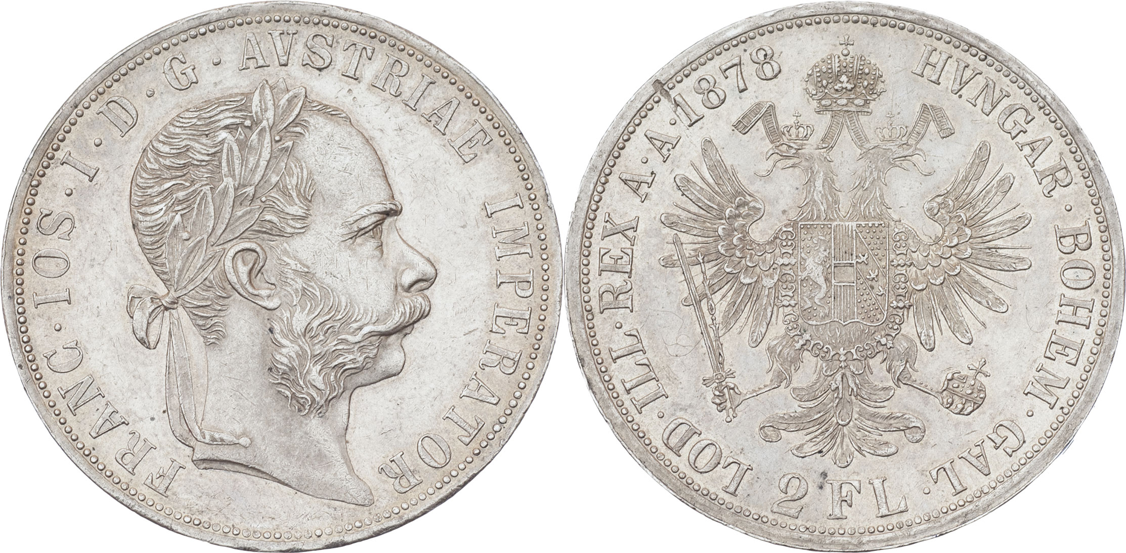 2 Zlatník 1878, 24.715g, dr.vada materiálu, nep.hr., nep.rysky, pěkná patina