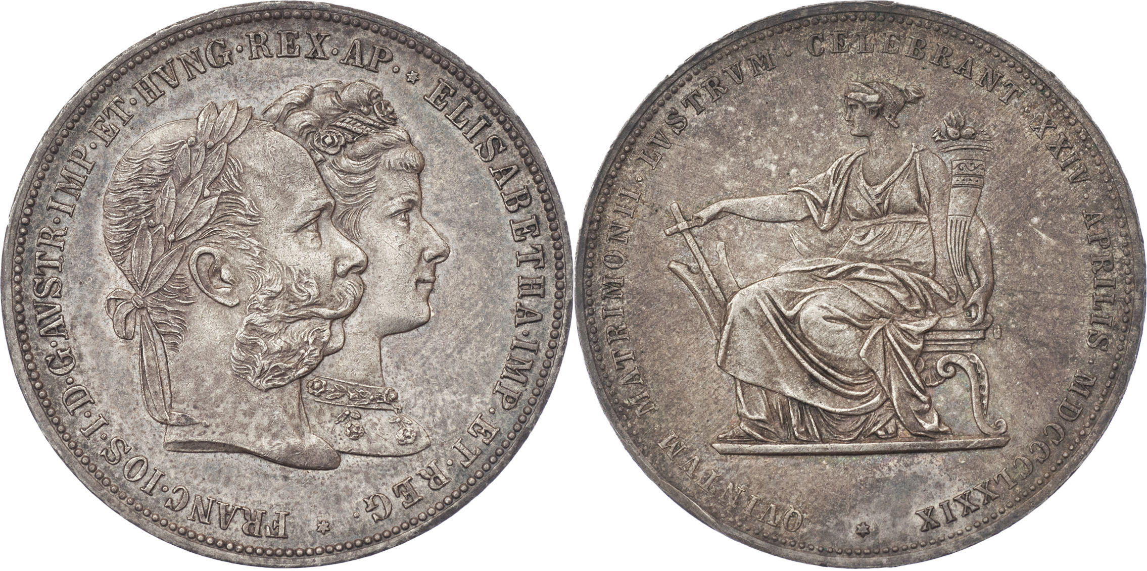 2 Zlatník 1879 - Stříbrná svatba, 24.695g, dr.hr., nep.rysky, krásná patina