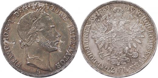 2 Zlatník 1859 B, 24.703g, nep.just., dr.hr., vlas.rysky, patina