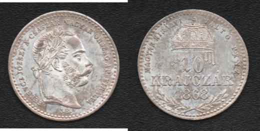 10 Krejcar 1868 KB - dlouhý opis, 1.690g, nep.hr., nep.rysky, pěkná patina, téměř