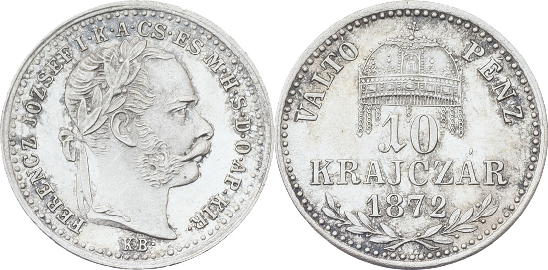 10 Krejcar 1872 KB - prvoražba, 1.545g R!