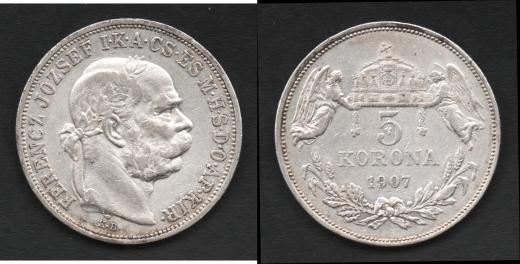 5 Koruna 1907 KB, 23.929g, dr.hr., dr.rysky, patina