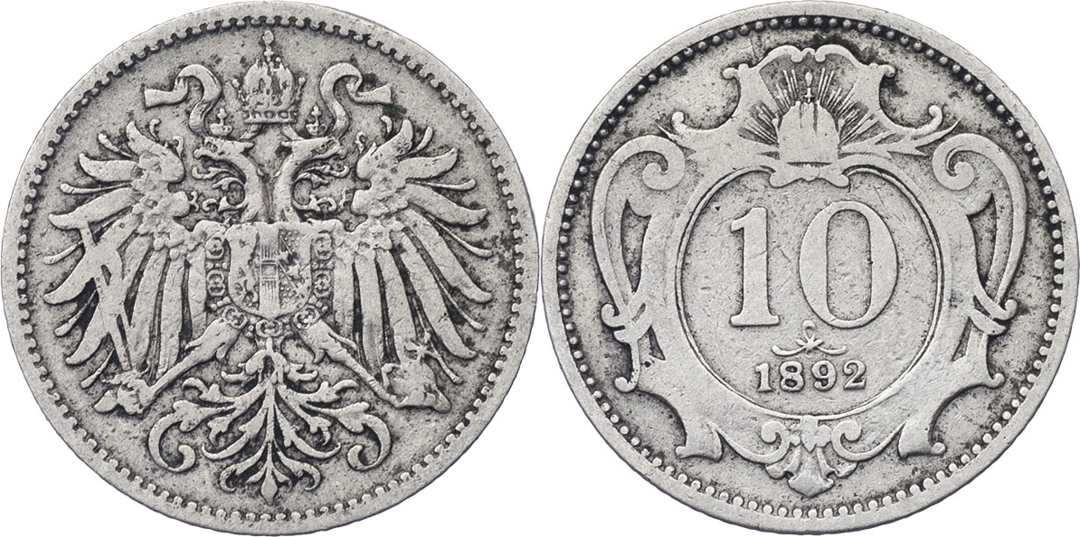 10 Haléř 1892, 2.904g, nep.hr., dr.rysky, patina RR!