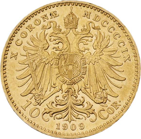 10 Koruna 1909 - Marschall, 3.386g, nep.hr., nep.rysky