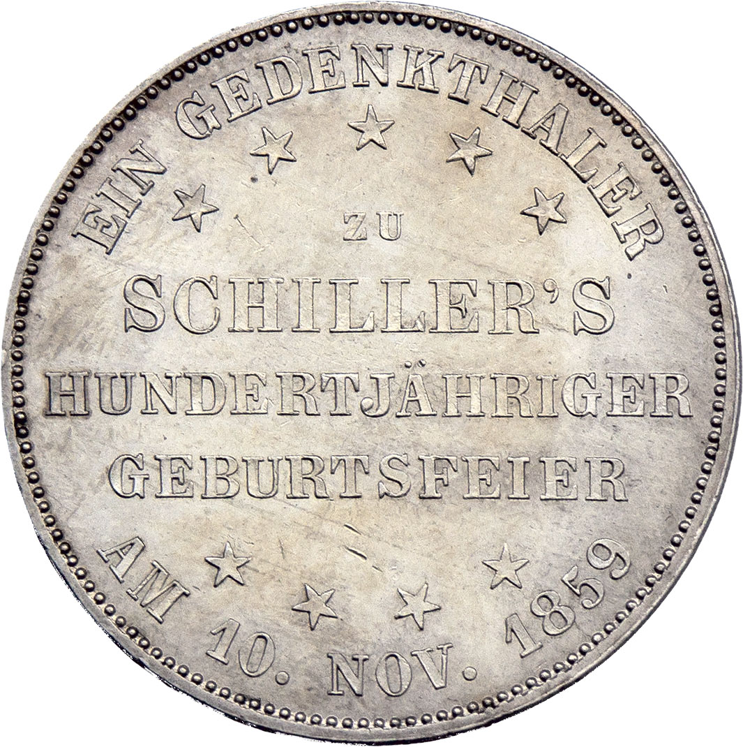 Spolkový tolar 1859 - 100 let narození Fr.Schillera, KM.359 (pouze 25.000 ks), 18.499g, dr.rysky R!