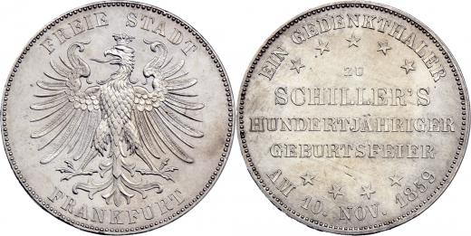 Spolkový tolar 1859 - 100 let narození Fr.Schillera, KM.359 (pouze 25.000 ks), 18.499g, dr.rysky R!