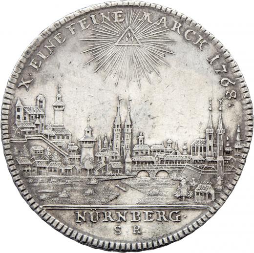 Tolar 1768 SR - císařský znak / pohled na město, KM.350, Dav.2494, 28.016g, dr.vady razidla, nep.hr., dr.rysky, patina