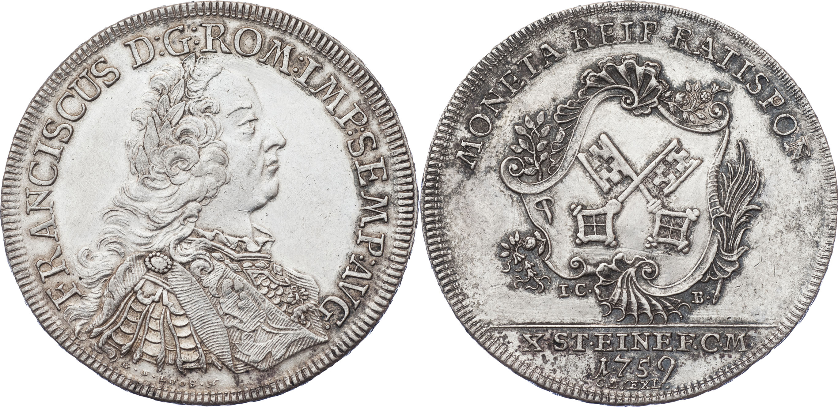 Tolar 1759 ICB - s portrétem Františka I. a znakem města, KM.374, Dav.2619, 28.016g, hlazen v ploše