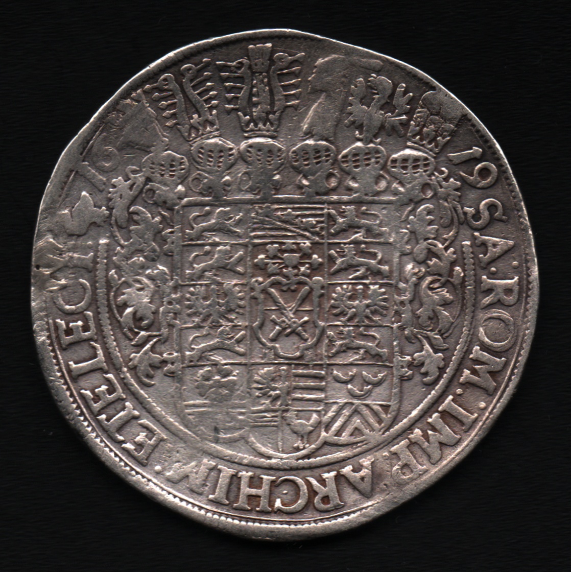 Tolar 1619, Drážďany-Hans Rehnen, KM.132, Dav.7601, podobný jako Haupt.22/197, 28.780g, dr.vady mater., stopa po oušku, nedor., hr., rysky, patina