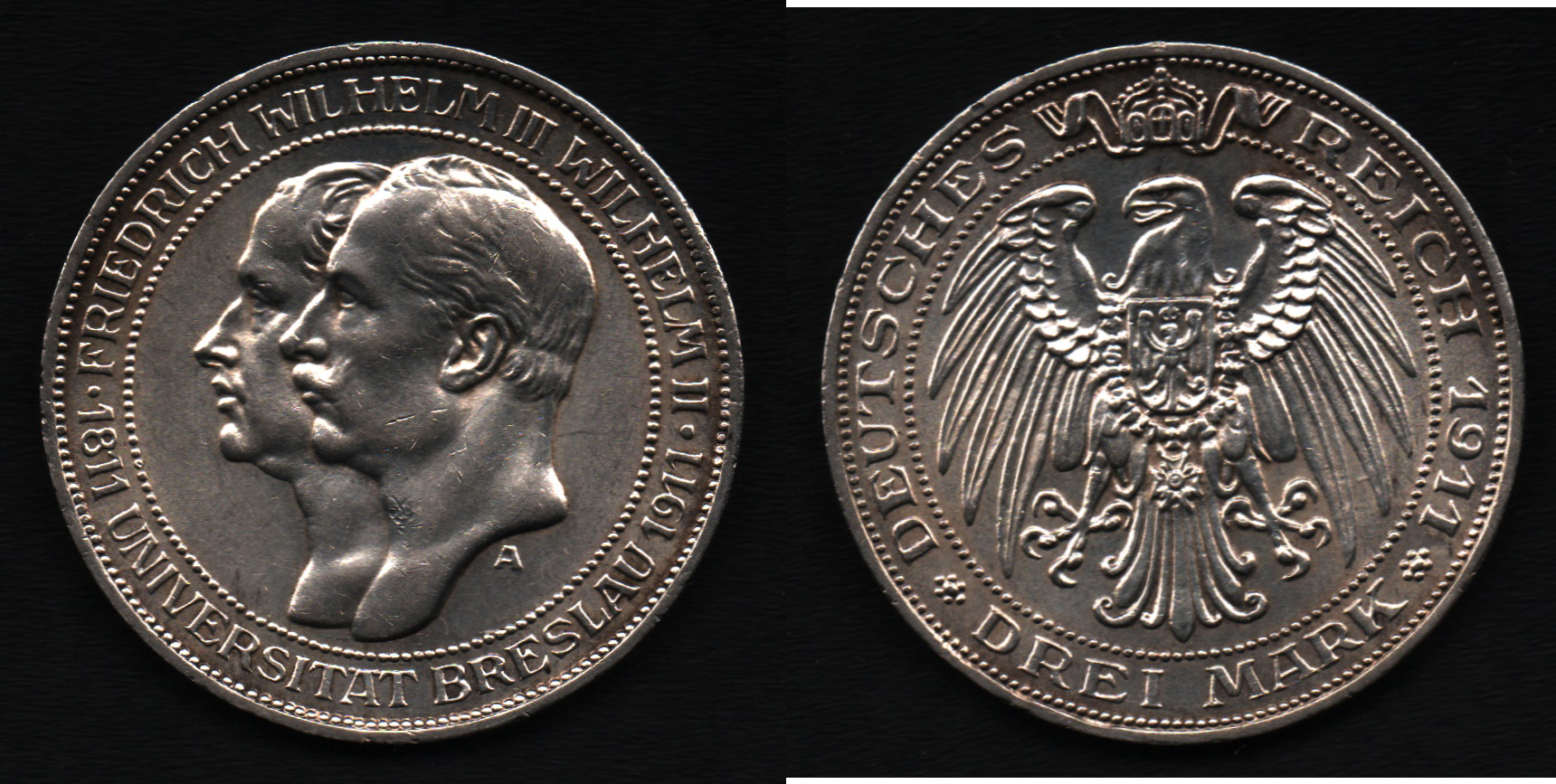 3 Marka 1911 - universita Vratislav, KM.531, 16.663g, nep.hr., nep.rysky
