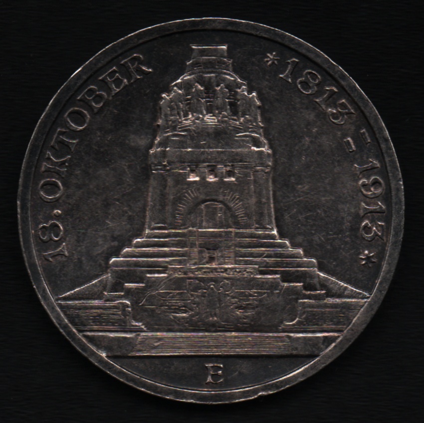 3 Marka 1913 E - památník bitvy u Lipska, KM.1275, 16.703g, dr.hr., nep.rysky, patina