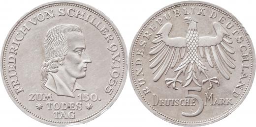 5 Marka 1955 F - Fr.Schiller, KM.114, 11.230g, hr., nep.rysky, téměř RR!