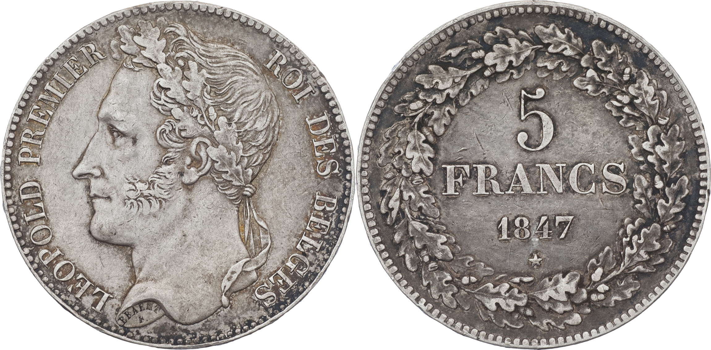 5 Frank 1847, KM.3.2, 24.952g, dr.hr., dr.rysky, patina R!