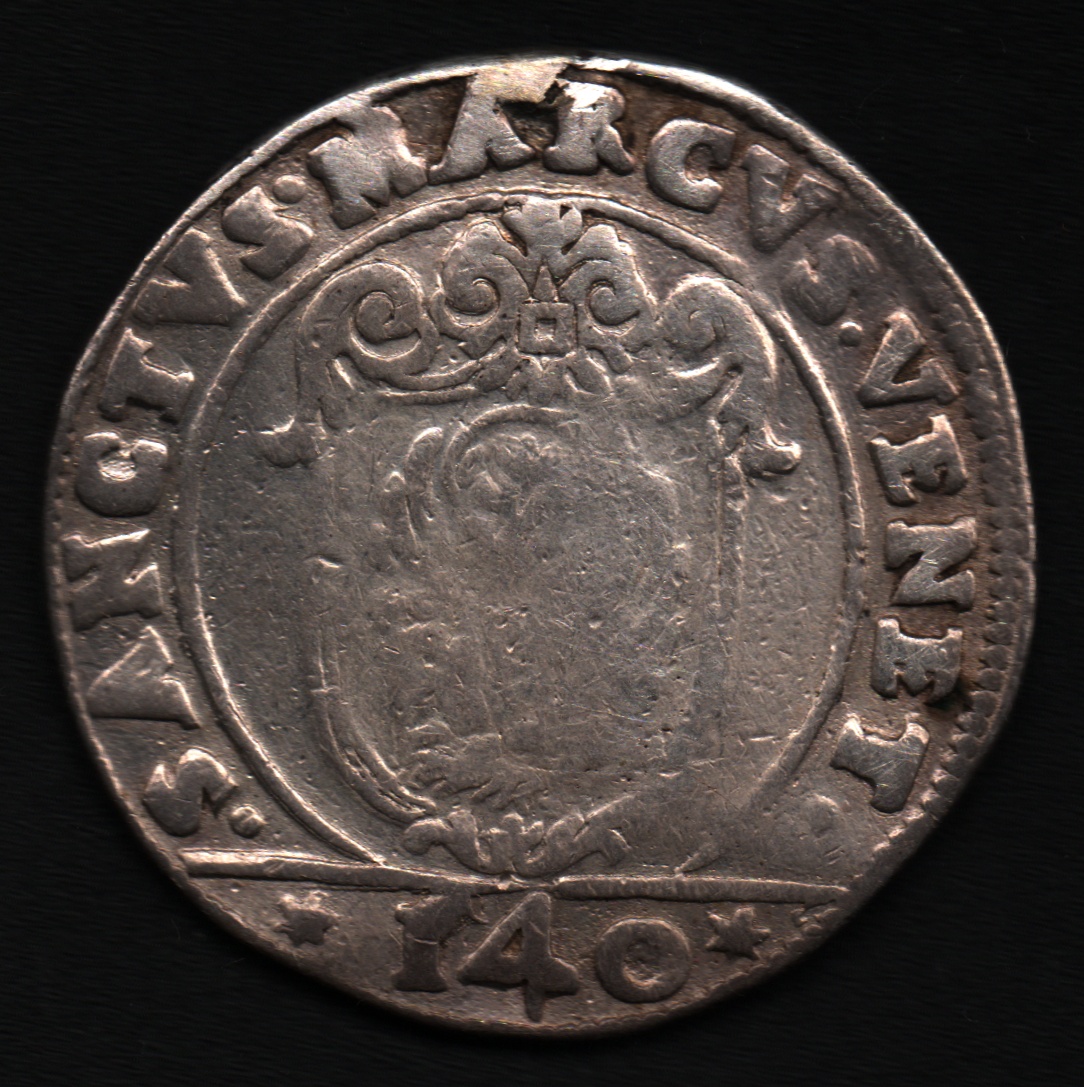 Scudo (140 Soldi) zn."DB", Donato Bembo, 1637-1638, Meyer.793, 30.926g, stopa po oušku, rysky, patina R!
