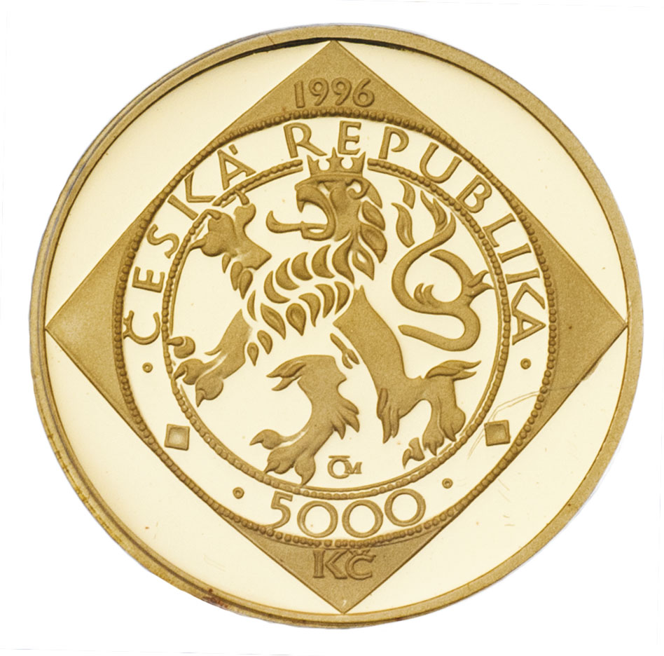 Sada zlatých mincí 1996 - české mince (10000, 5000, 2500, 1000 Koruna = 1,1/2,1/4 a 1/10 Unce), 31.121g, 15.575g, 7.763g, 3.114g, kasple, společná etue, karty