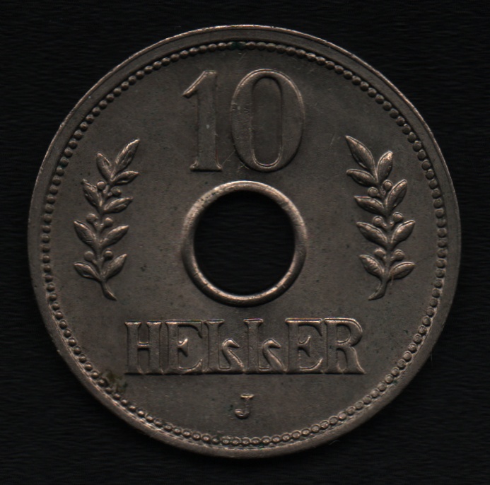 10 Heller 1914 J, KM.12 (CuNi), 6.273g, nep.skvrnka, patina, téměř R!