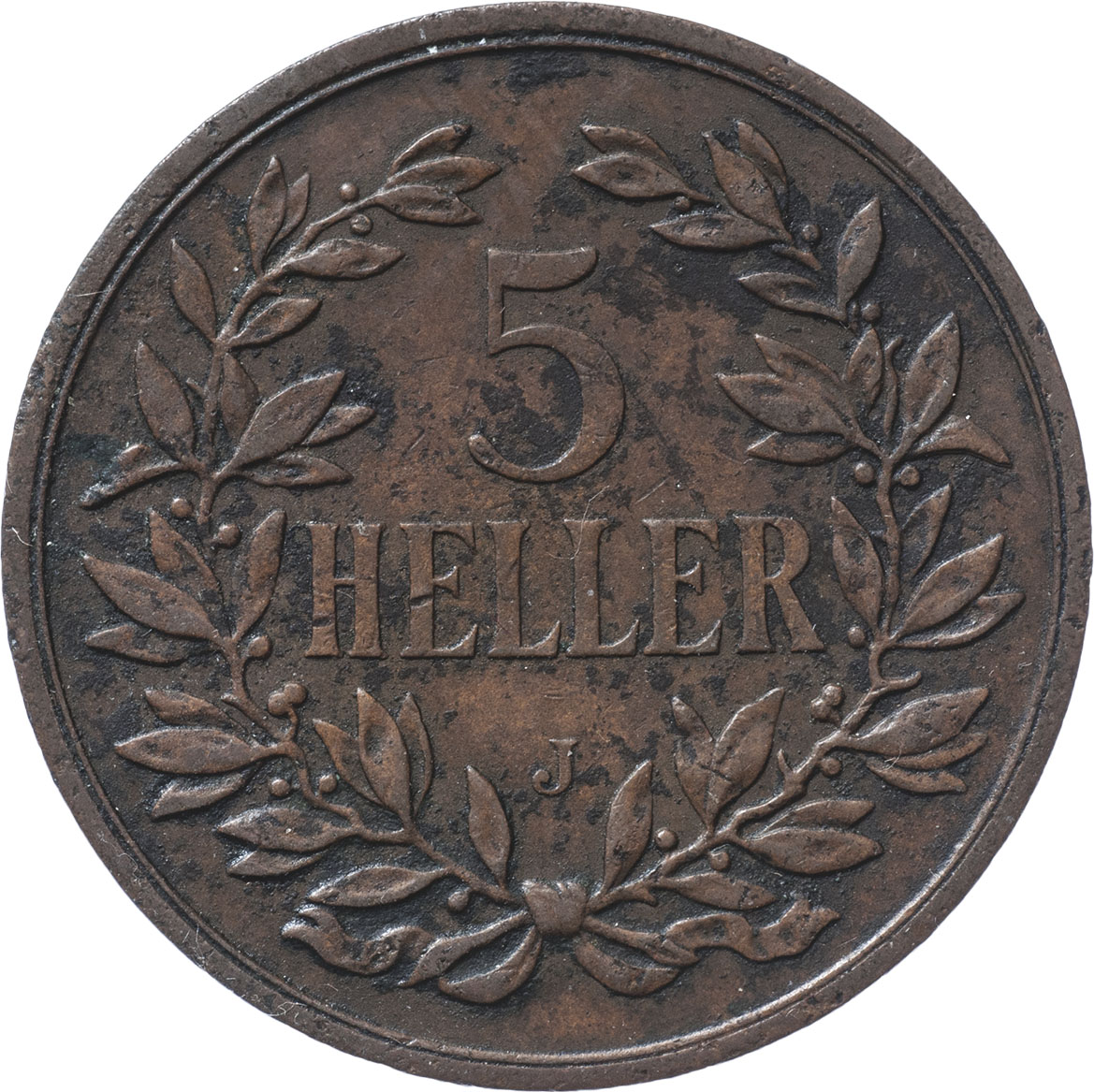 5 Heller 1908 J, KM.11 (bronz), 19.893g, dr.hr., dr.rysky, patina RR!
