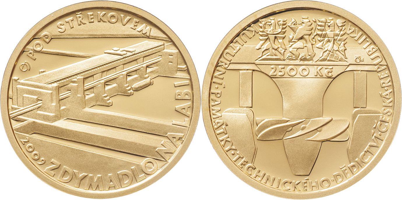 2500 Koruna (1/4 Unce) 2009 - Zdymadlo na Labi pod Střekovem, 7.830g, kapsle, etue