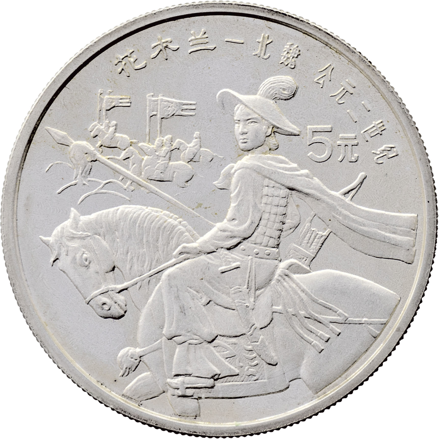 5 Yuan 1992 - Mulan Hua na koni, Y.551 (pouze 7.000 ks), kapsle, skvrnky