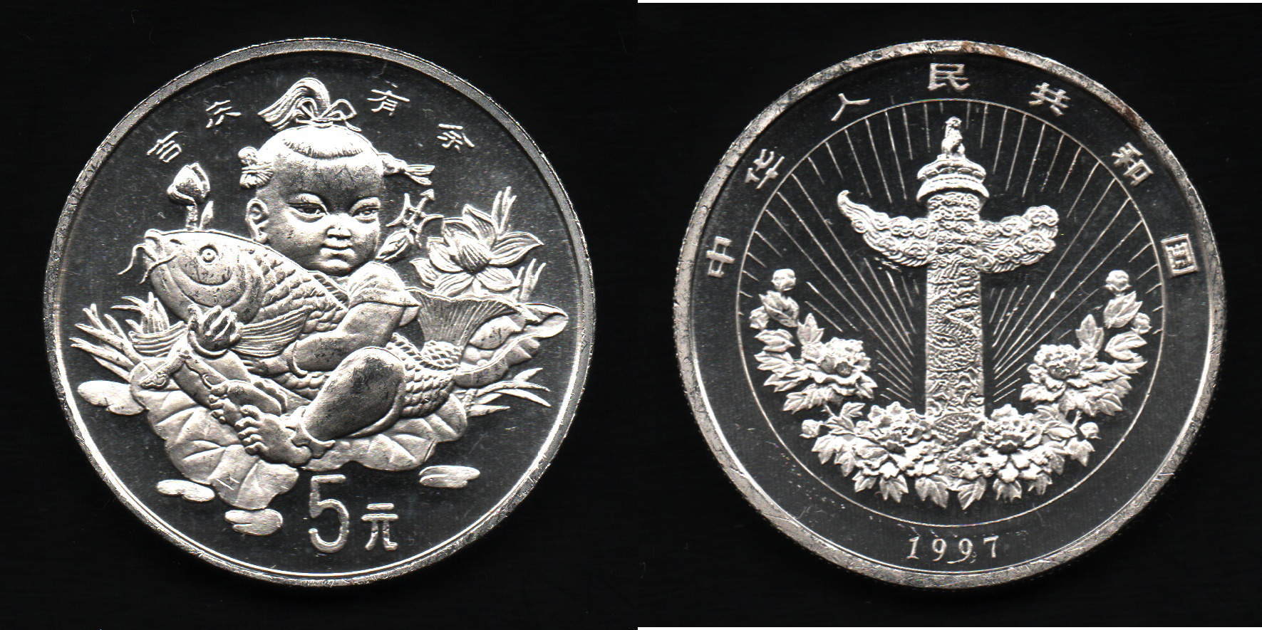 5 Yuan 1997 - dítě s kaprem, Y.916.1, kapsle