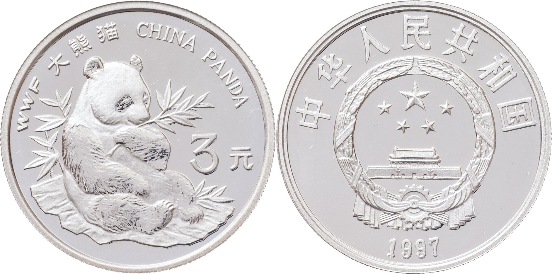 3 Yuan 1997 - panda, Y.1081 (pouze 50.000 ks), kapsle