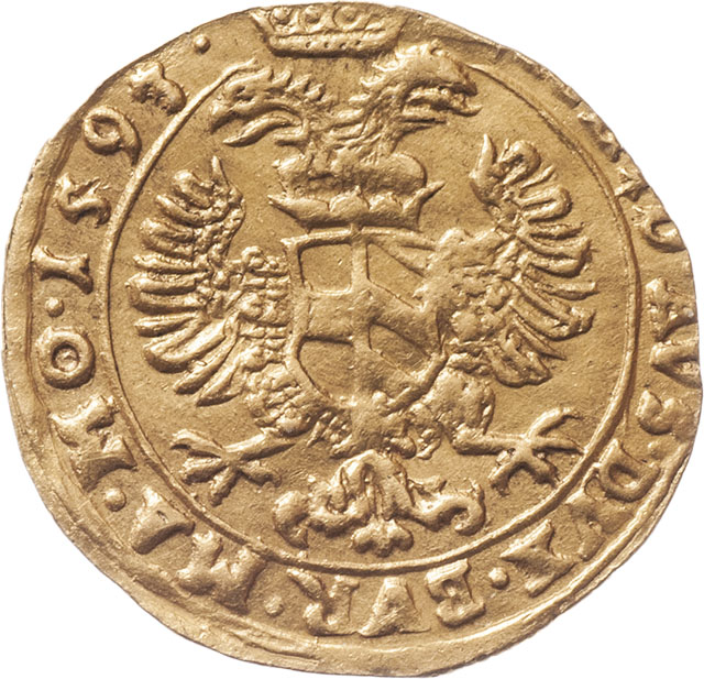 Dukát 1593, Praha-Ercker, MKČ.298, J.66c/66b-1, 3.465g, mírně exc., nep.nedor., pěkná patina R!
