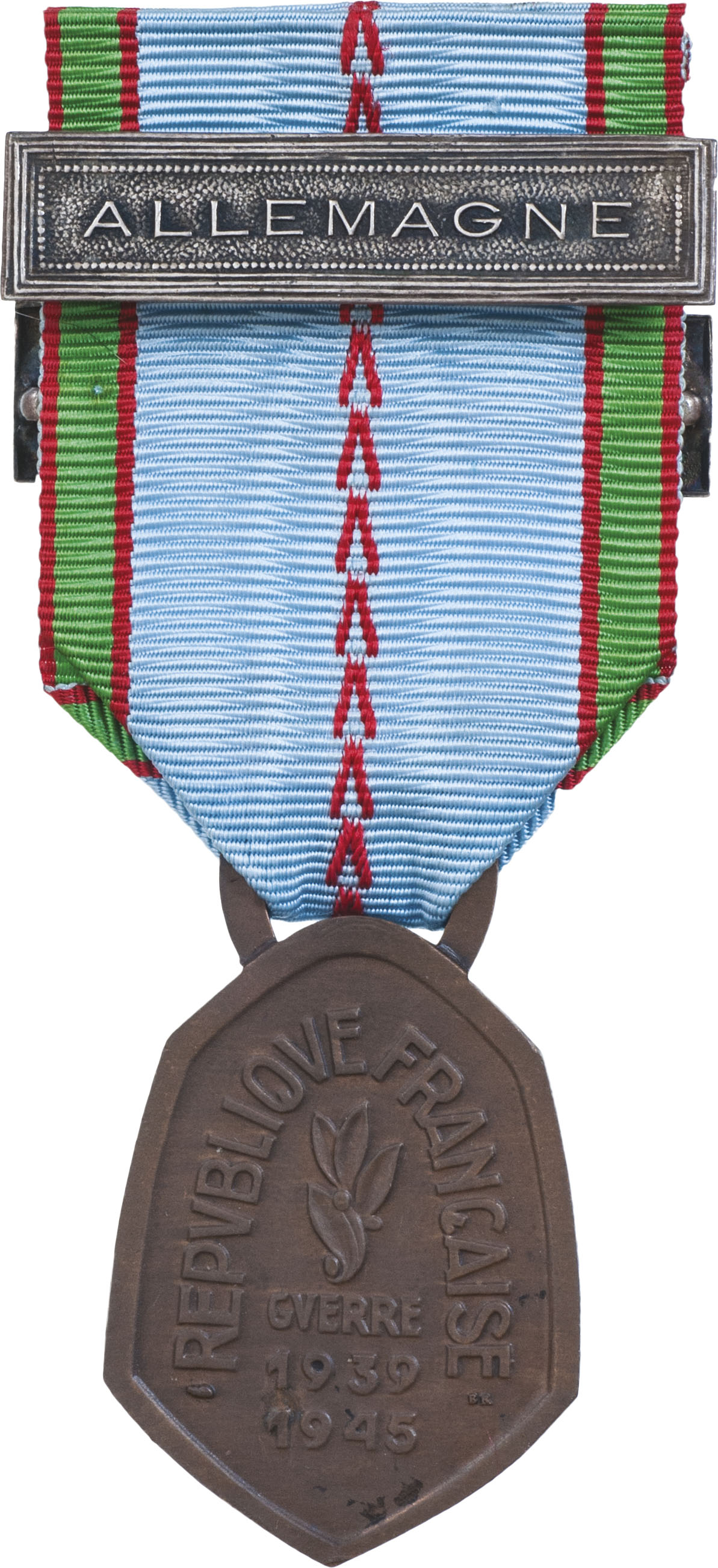 Válečná pamětní medaile 1939 - 1945, VFR.38, stuha se štítky "AFRIQUE" a "ALLEMAGNE"