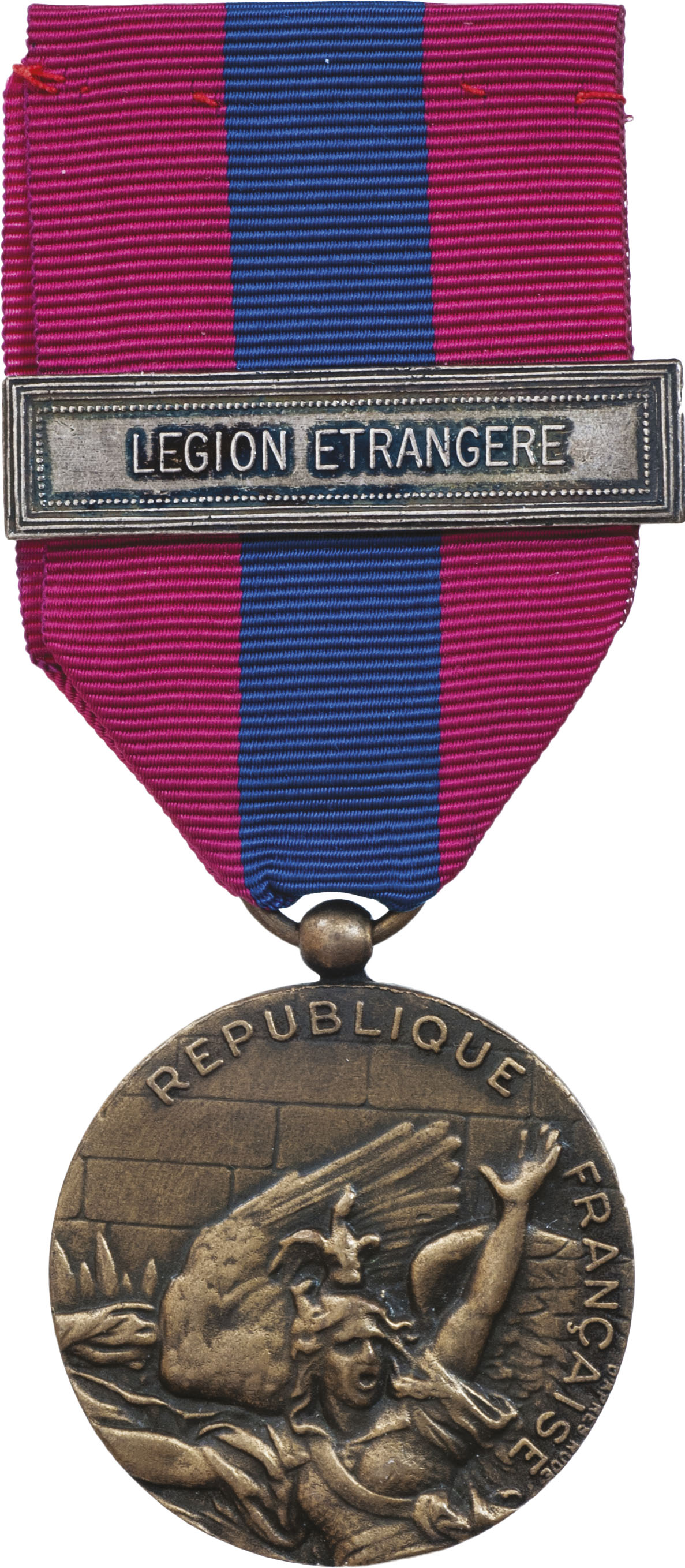 Pam. medaile Národní obrany 1982 - 3.stupeň, VFR.55a, na stuze štítek "LEGION ETRANGERE"