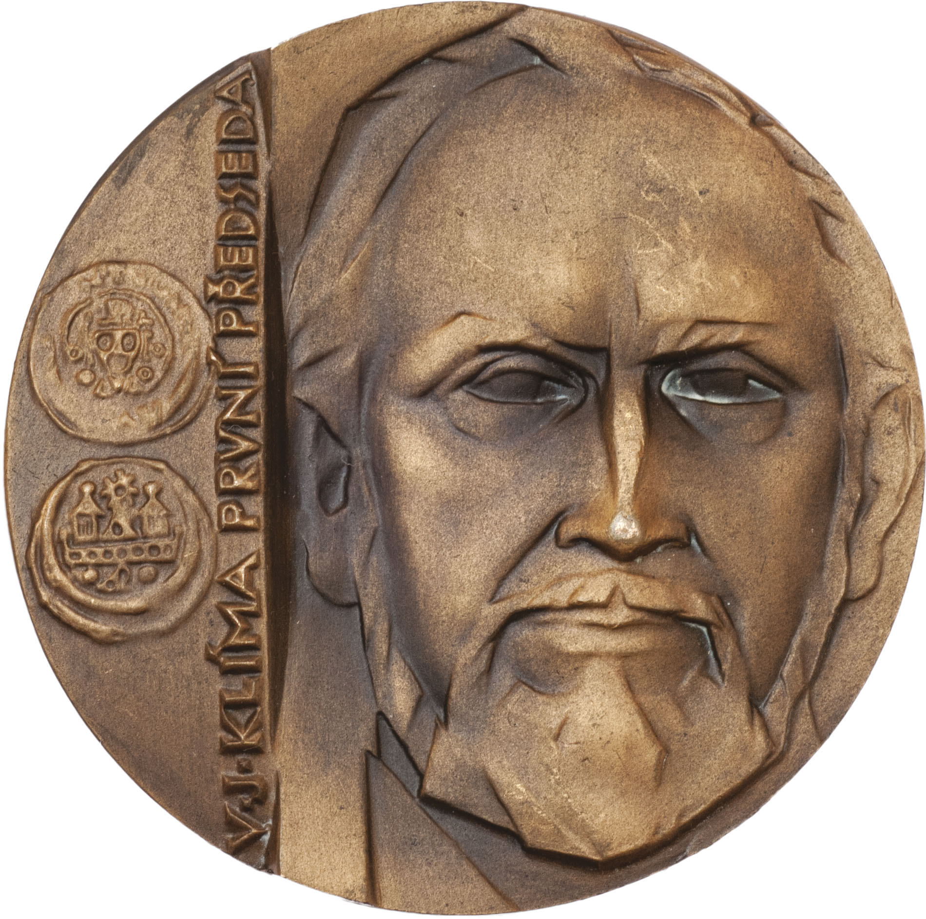 Kolářský - 10 let pobočky 1979 - portrét V. Klímy zpředu, mince, nápis / pohled na město, mince, opis, Sign., patin. bronz 60mm, 144.400g, BK.6 (60ks) RR!