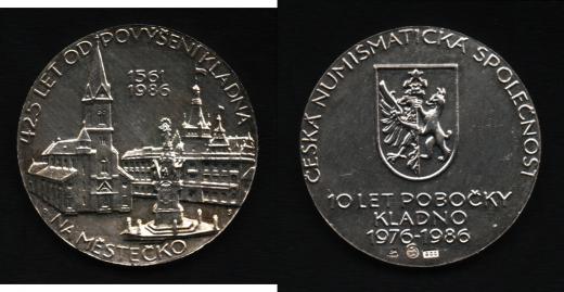David a Spíchal - 10 let pobočky 1986 - historické budovy města, vročení, opis / znak města, opis a nápis, Sign., Punc. Ag900, 28mm, 15.785g, FM.2 R!