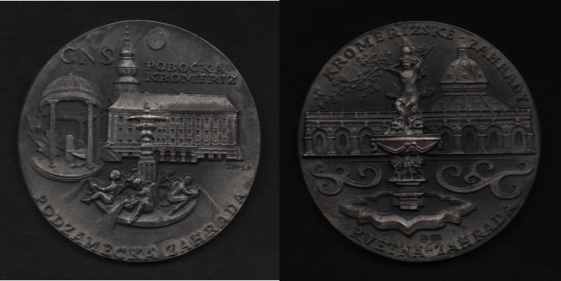 Novák a Bódi - Kroměřížské zahrady b.l. (1982) - pohled do Květné zahrady, opis / pohled do Podzámecké zahrady, opis, patin. Ag900, 42mm, 38.031g, BK.7 R!