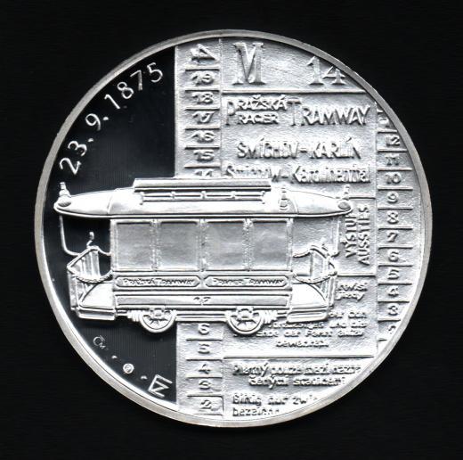 Praha - 135 let tramvajového provozu 2010 - tramvaj tažená koňmi, detail kola, opis / tramvaj, lístek, vročení, Sign., Ag999, 50mm, 42.558g, kapsle, text