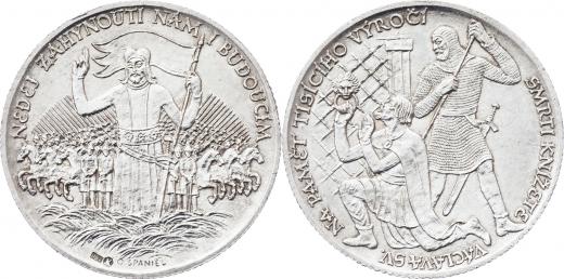 Medaile na 1000 let zavraždění svatého Václava 1929 - scéna zavraždění, opis/ sv.Václav v čele blanických rytířů, opis, Sign., Ag987, 30mm, 10.010g, nep.rysky