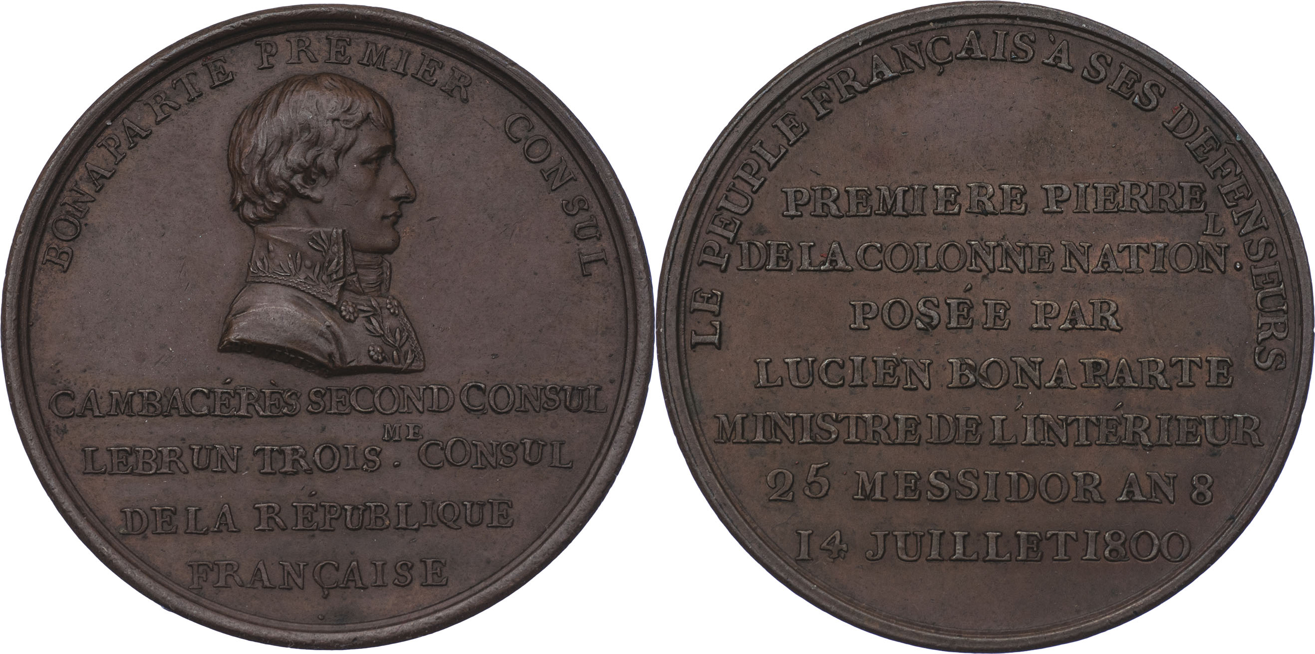 Duvivier - AE medaile na základní kámen sloupu Národa 1800 - poprsí zprava, opis a nápis / opis a 7-řádkový nápis, Sign., 42mm, 36.816g, Zeitz.16, krásná patina